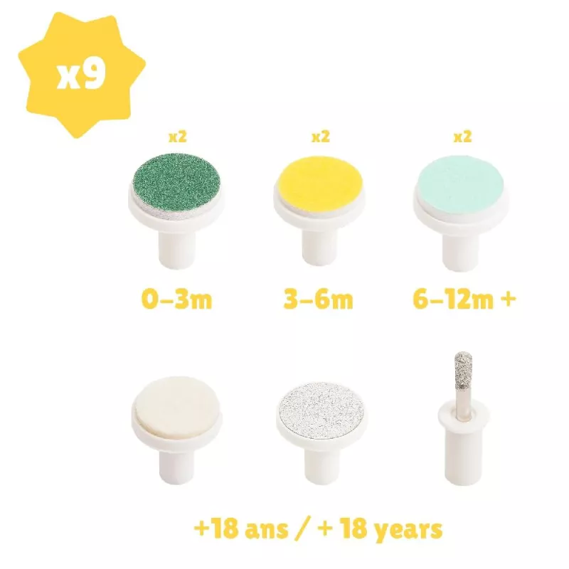 - Cuidado Versátil y Completo: Incluye 6 puntas intercambiables con diferentes granos y 3 recambios adicionales. Se adapta perfectamente a las uñas delicadas de recién nacidos, bebés y niños pequeños.