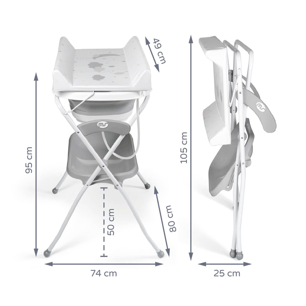 El cambiador con bañera plegable Zoe no solo es funcional, sino que también se adapta a tus necesidades. Puedes separar la bañera del cambiador y utilizar cada uno de forma independiente.