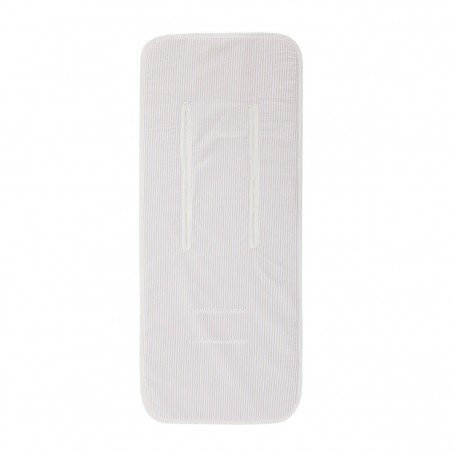 La colchoneta silla universal de Cambrass viene provista de ojales verticales con cierre de velcro para poder ajustar los arneses de la silla según vaya creciendo el bebé. En su parte trasera lleva cintas, gomas y ajustes para que quede perfectamente sujeta a la sillita. Además su tejido impermeable facilita su limpieza.