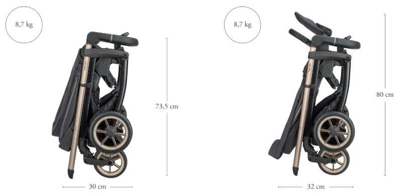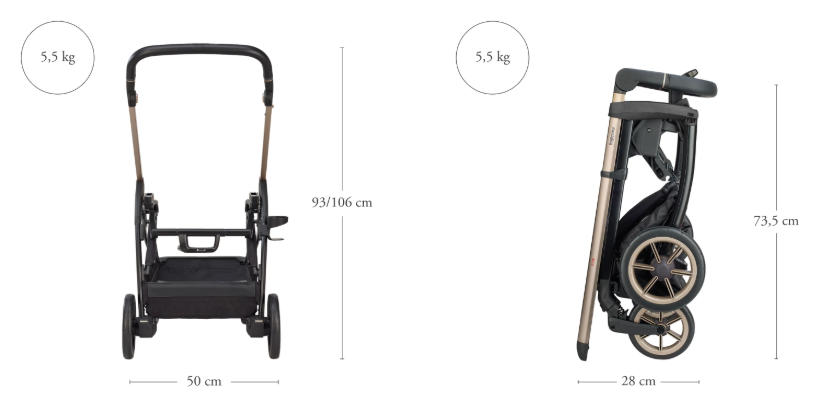La estructura del chasis Electa es increíblemente ligera, sorprendentemente compacta y se abre y cierra con un plegado de una sola mano. Gracias a un sistema de rodadura de última generación se desplaza con gran facilidad por todos los rincones de la ciudad y el asa de transporte regulable en altura facilita su uso a todos los padres.