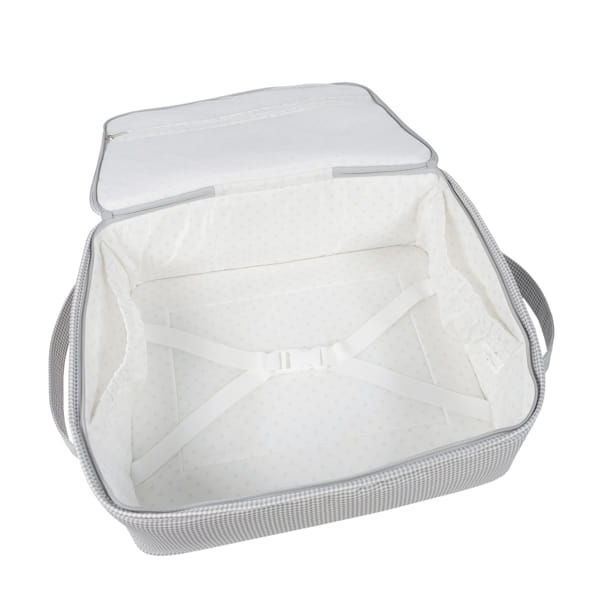 Su tratamiento water resisitant la hace resistente al agua, garantizando protección y durabilidad en el día a día. Su forma rectangular que brinda comodidad para tener cubiertas todas tus necesidades (mudas o accesorios) durante el día del nacimiento del bebé.