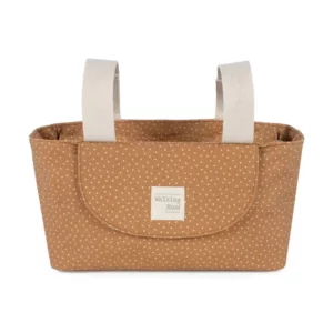 El bolso organizador Poppy Musgo de topitos para silla de paseo es un modelo muy ligero además de ser resistente y espacioso para que puedas llevar todo lo que podrías necesitar durante el paseo de tu bebé.