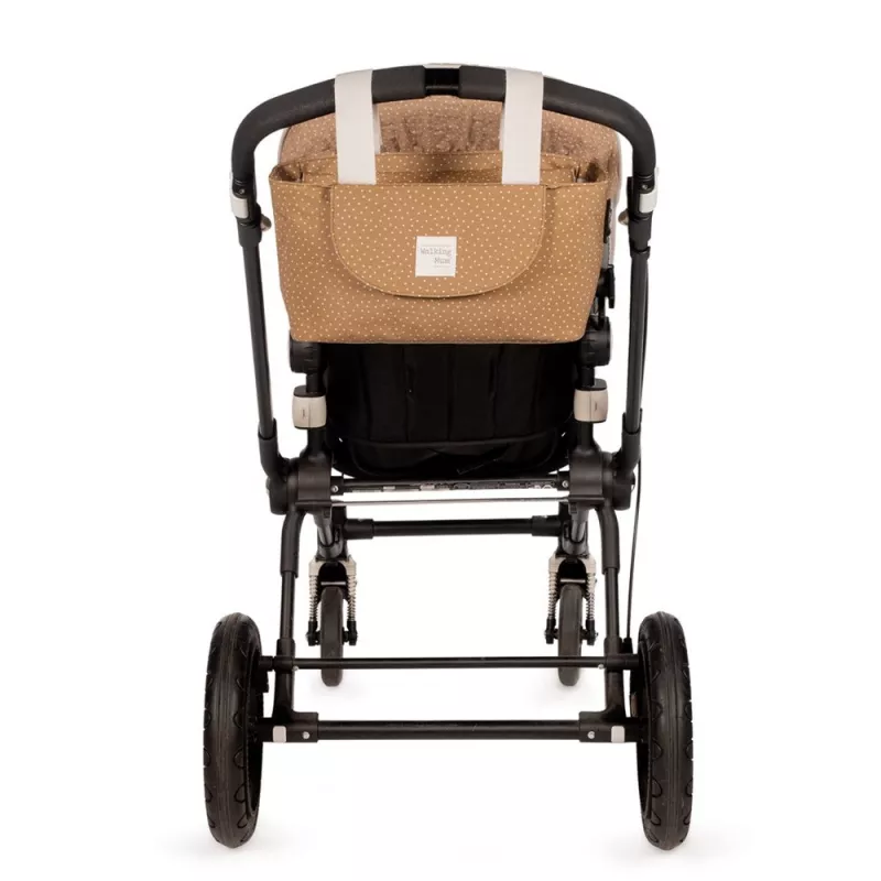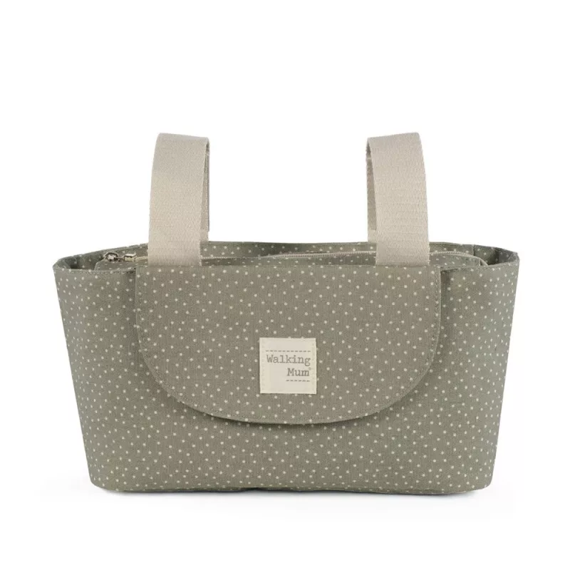 El bolso organizador Poppy Musgo de topitos para silla de paseo es un modelo muy ligero además de ser resistente y espacioso para que puedas llevar todo lo que podrías necesitar durante el paseo de tu bebé.