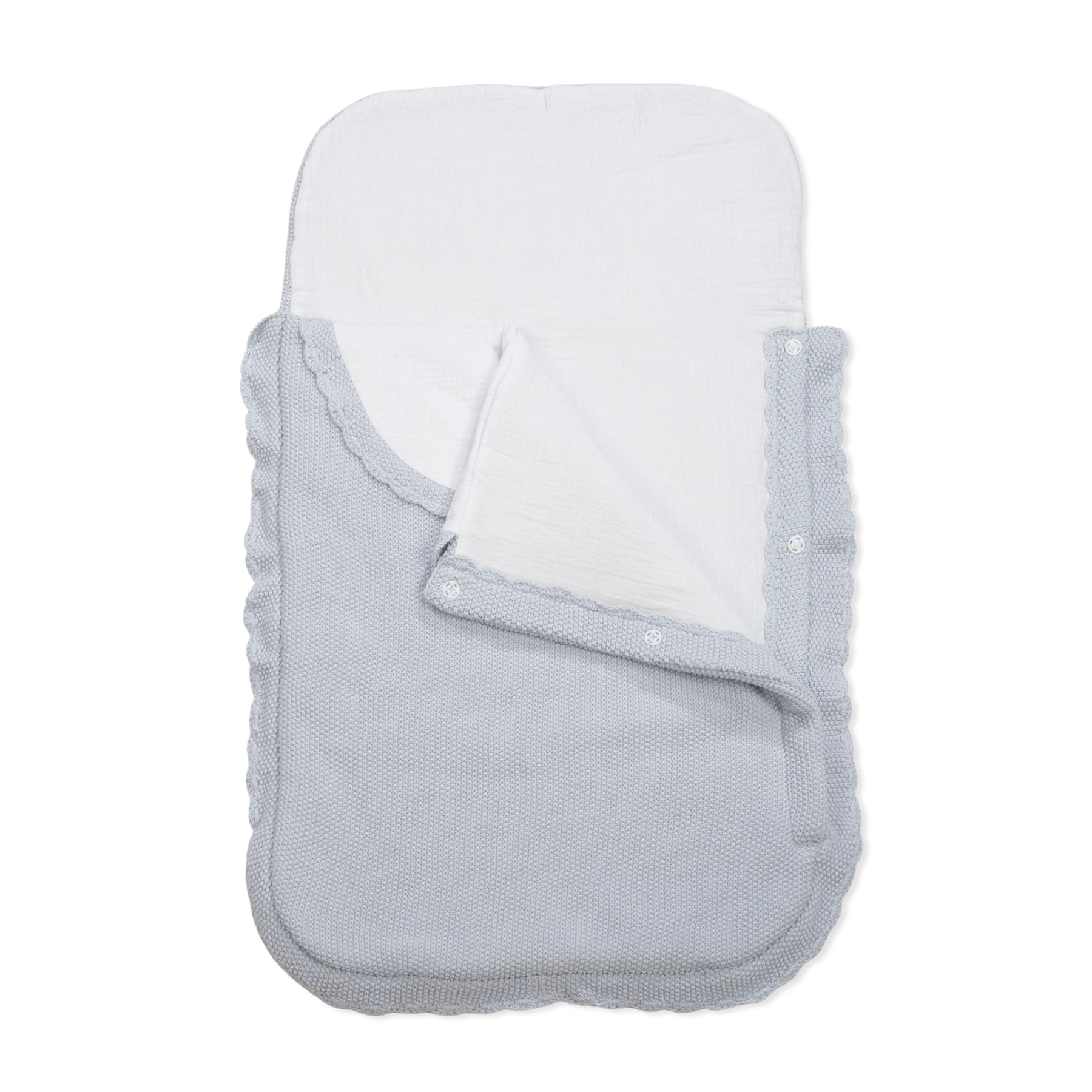El saco cuco Tricot de Pasito a Pasito es ideal para mantener a tu bebé cómodo y protegido en sus primeros días. Con un diseño elegante y delicado en punto de arroz con acabado de crochet en ondas, combina estilo, suavidad y funcionalidad. Materiales 100% algodón. Exterior en tricot y forro interior en bambula lisa para un contacto suave con la piel del bebé. Cierre mediante clips que permite colocar y retirar al bebé sin molestias. Incluye bolsa de hilo con logo, ideal para regalar. Gran calidad y mucho estilo. Todas nuestras fundas están fabricadas conforme a las más exigentes normativas europeas. Certificación SVHC / EN-14362 Azo free libre de sustancias nocivas. De fácil limpieza, se recomienda lavar a máquina a 30º. Los productos para bebé de Pasito a Pasito cuentan con un diseño muy diferente a todas las demás. Sus colecciones se caracterizan por el trabajo al detallada, pensadas siempre desde un punto de vista práctico. Utilizan materiales de primera calidad para remarcar la elegancia y la armonía en cada una de sus piezas. Nuestros modelos son exclusivos y de estilo inconfundible, pensados en las madres actuales que gozan de buen gusto y que aprecian los detalles tanto como nosotros. Tamaño: 71 x 42 cm.