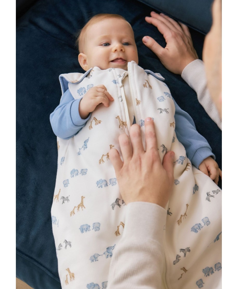 Saco de dormir para mantener abrigado de forma segura a tu bebé, al tiempo que evitas que se destape. Tiene tirantes regulables a diferentes alturas y bajo ajustable con botones a presión. Su indicador de aislamiento térmico TOG 2 lo convierte en un saco acolchado y cálido. Cierre con cremallera. Modelo con forro interior. Es talla única y mide aproximadamente 70 cm de largo desde el hombro.