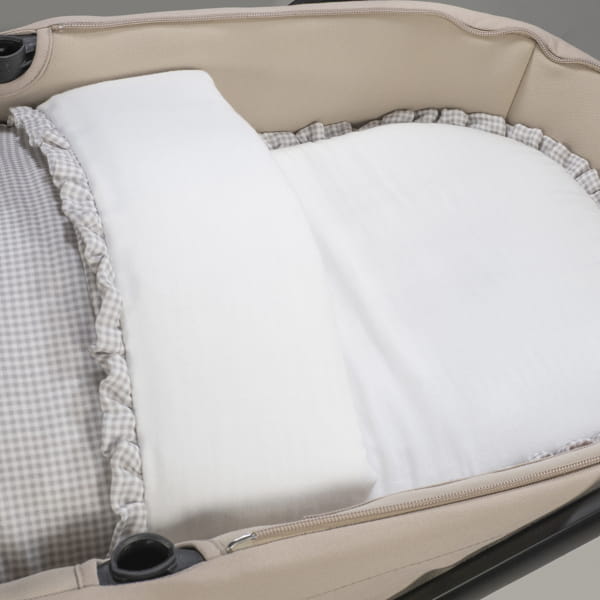Su delicado diseño combina muselina estampada y muselina lisa 100% algodón, aportando ligereza, transpirabilidad y un tacto natural ideal para la piel del recién nacido. Incorpora una colchoneta interior con tejido 3D, que mejora la ventilación y el confort durante el descanso.