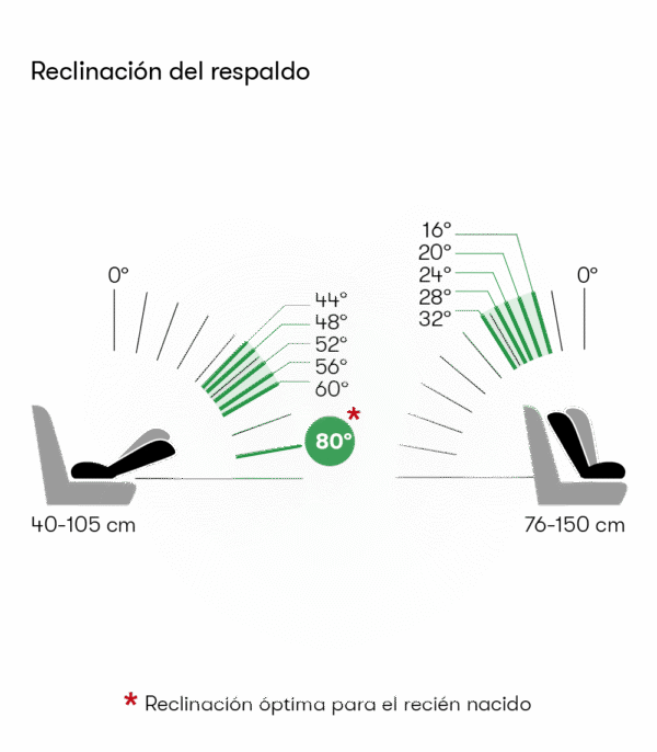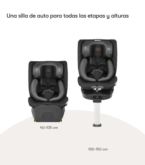 • Máximo confort desde el primer día: su diseño giratorio facilita la colocación del bebé, y su amplia reclinación garantiza viajes cómodos en cada etapa.