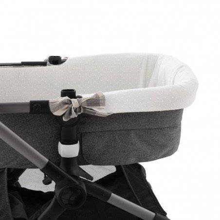 Con unas medidas de 35 x 75 x 35 cm, cubre el interior del capazo ayudando a protegerlo frente al uso diario. El sistema de fijación mediante cremallera permite mantener la vestidura correctamente colocada en modelos compatibles.